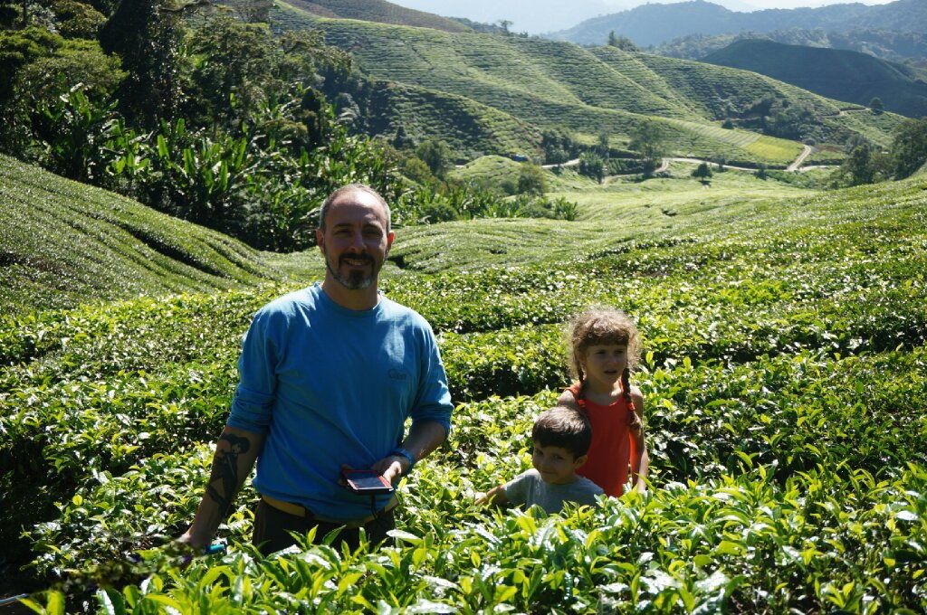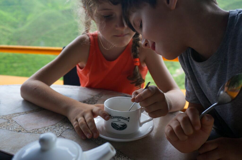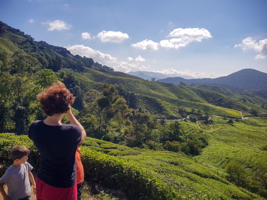 Nous visitons la 2ème plantation, où il nous fait rentrer gratuitement et prenons un thé au salon qui surplombe les théiers.