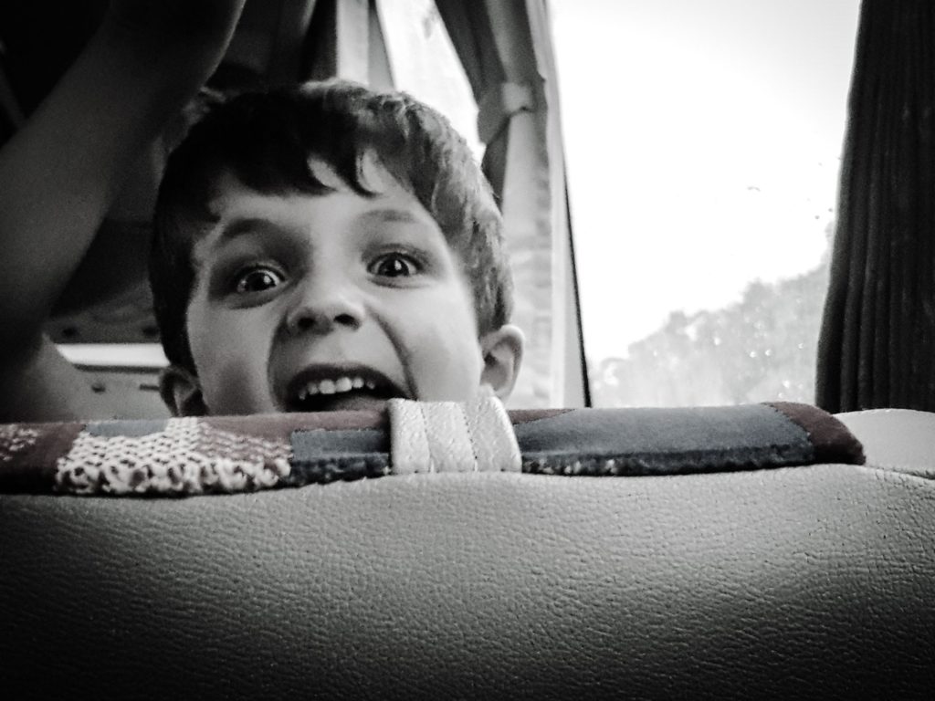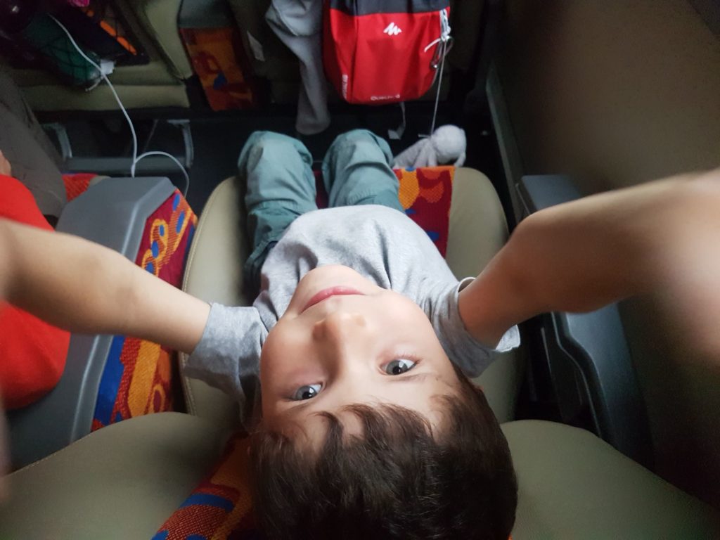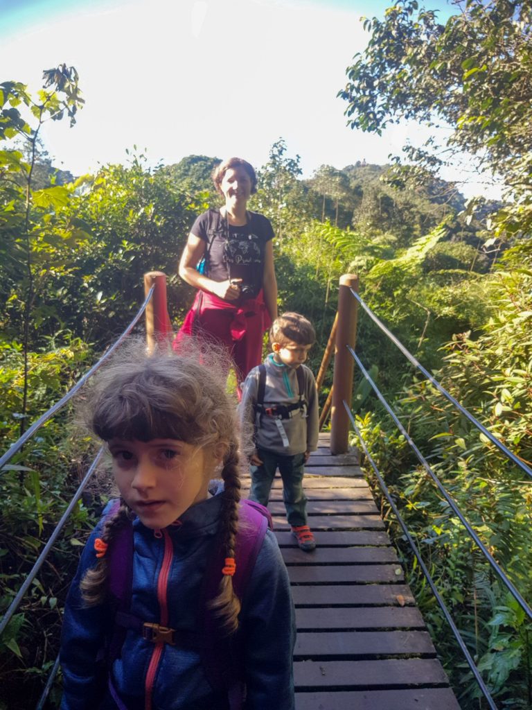 Une fois à bord, c’est sous la pluie (il paraît qu’ici il pleut tous les après-midi) que nous nous installons pour 5 heures de route et une longue sieste pour petits et grands !…