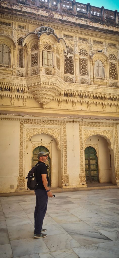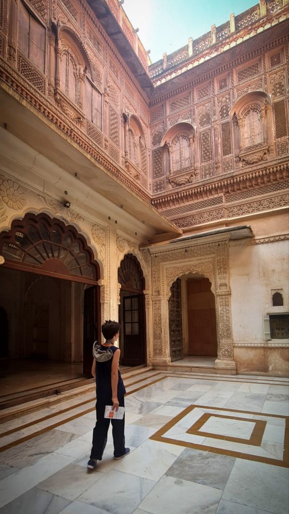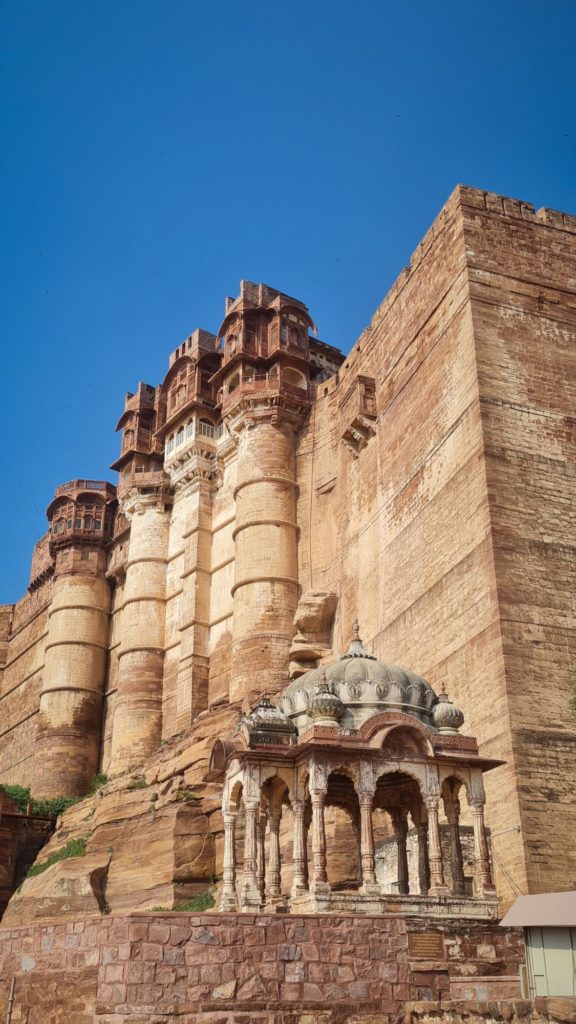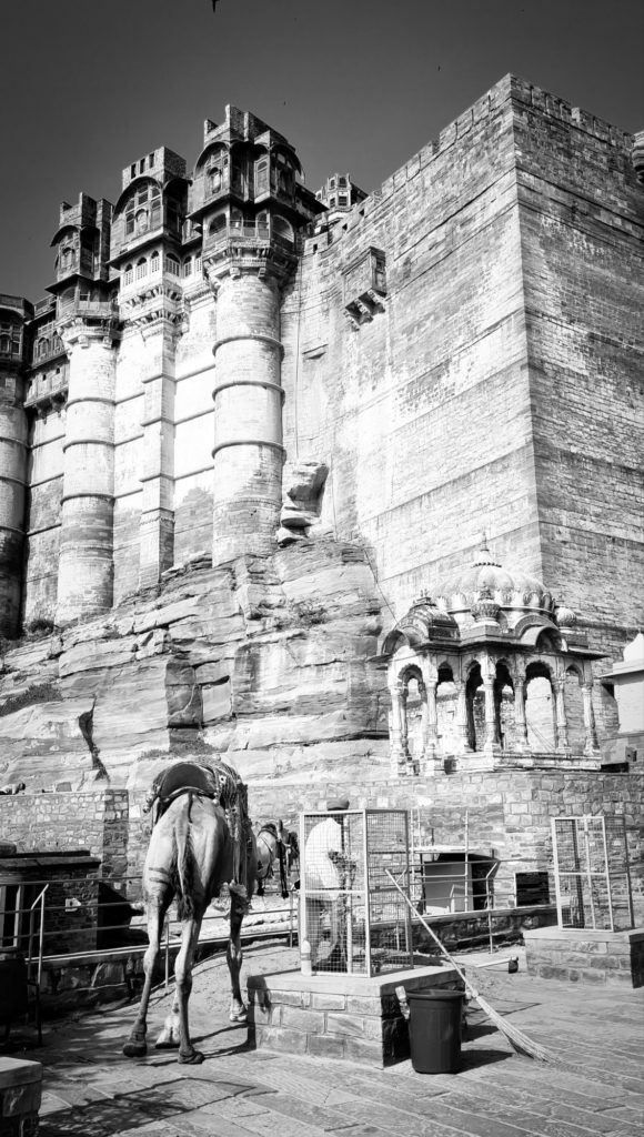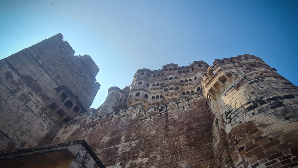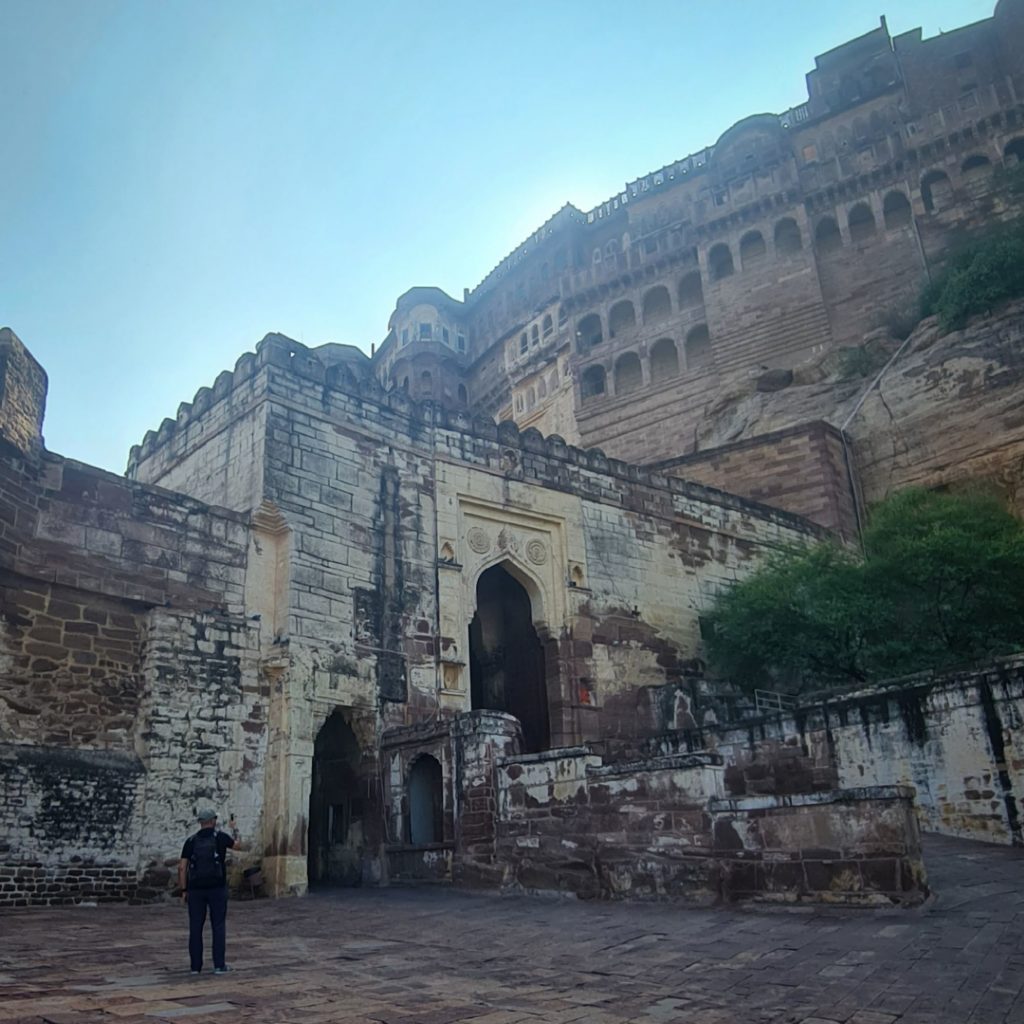 Aujourd’hui, nous sommes dès l’ouverture devant les portes du Fort Mehrangarh, LA forteresse à visiter ici ! Il fait déjà une chaleur accablante, on frôle les murs pour trouver de la fraîcheur.
