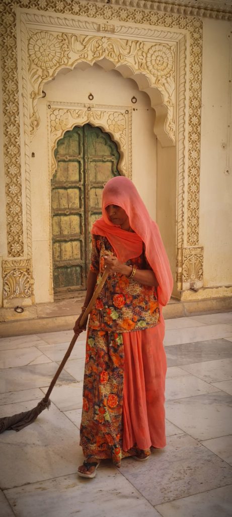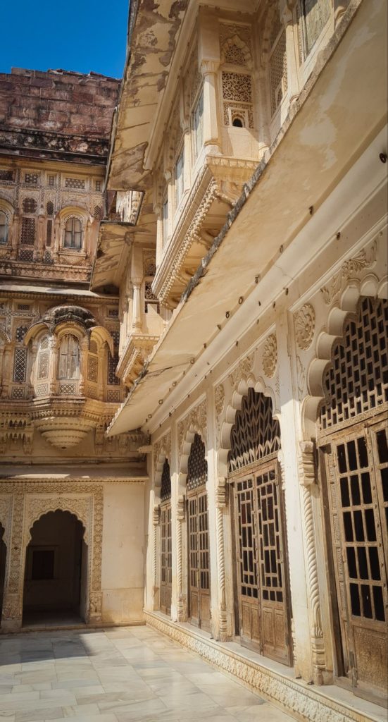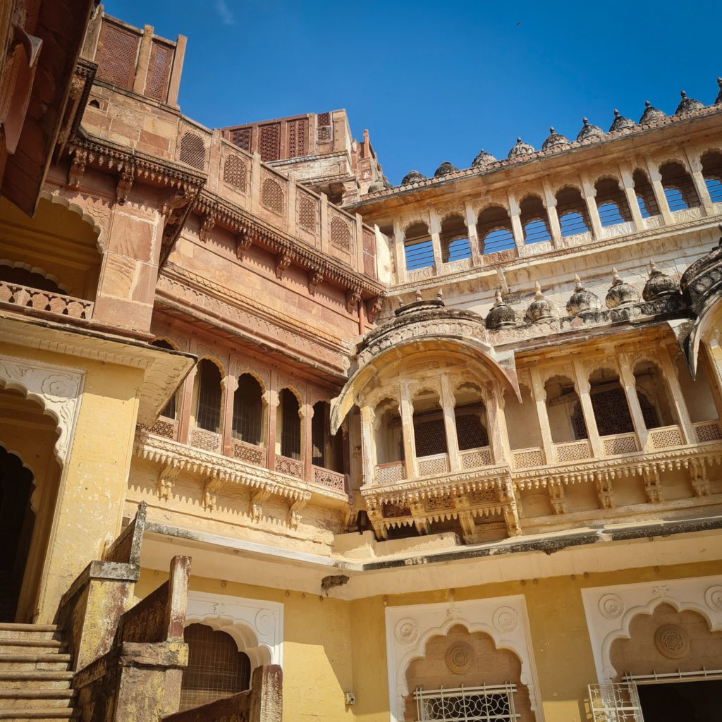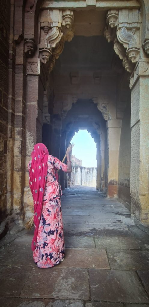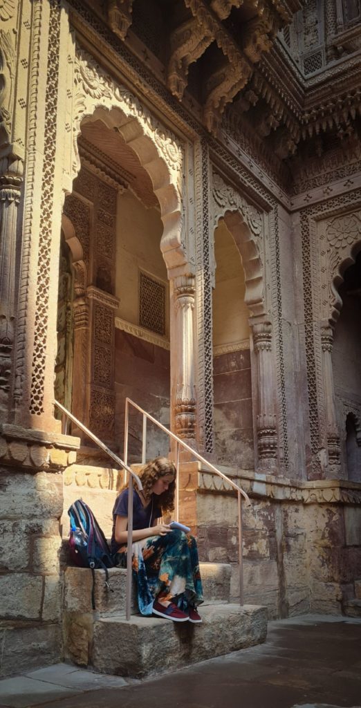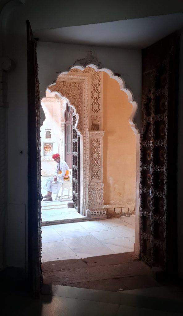 Aujourd’hui, nous sommes dès l’ouverture devant les portes du Fort Mehrangarh, LA forteresse à visiter ici ! Il fait déjà une chaleur accablante, on frôle les murs pour trouver de la fraîcheur.