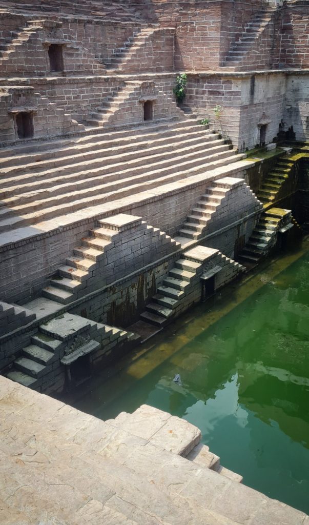 Pour faire face à l’aridité du Rajasthan, ces puits monumentaux ont été construits pour être destinés à récolter l’eau durant la mousson puis à la stocker et, grâce à cette organisation en degrés, ils permettent à un grand nombre de personnes de profiter simultanément du puits.