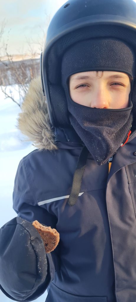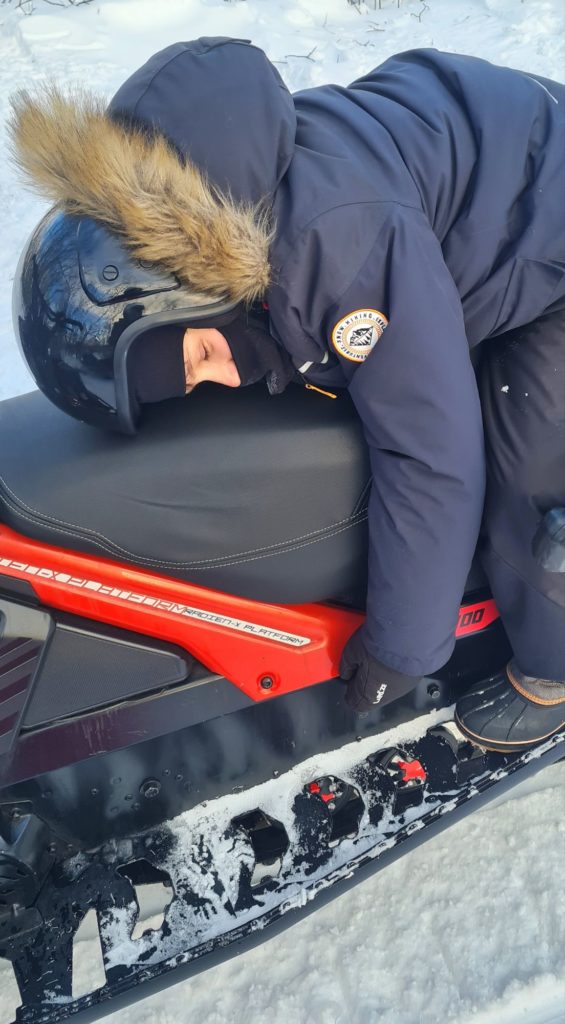 Sur une zone un peu dégagée, je me permets d’accélérer, Sacha est aux anges ! Lorsque nous terminons notre tour, il ne veut plus quitter la motoneige…