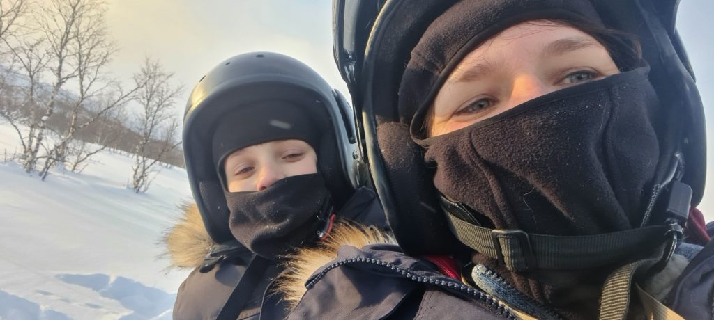 Nous avons réservé ce matin une sortie en motoneige avec l’hôtel, Sacha est super excité !