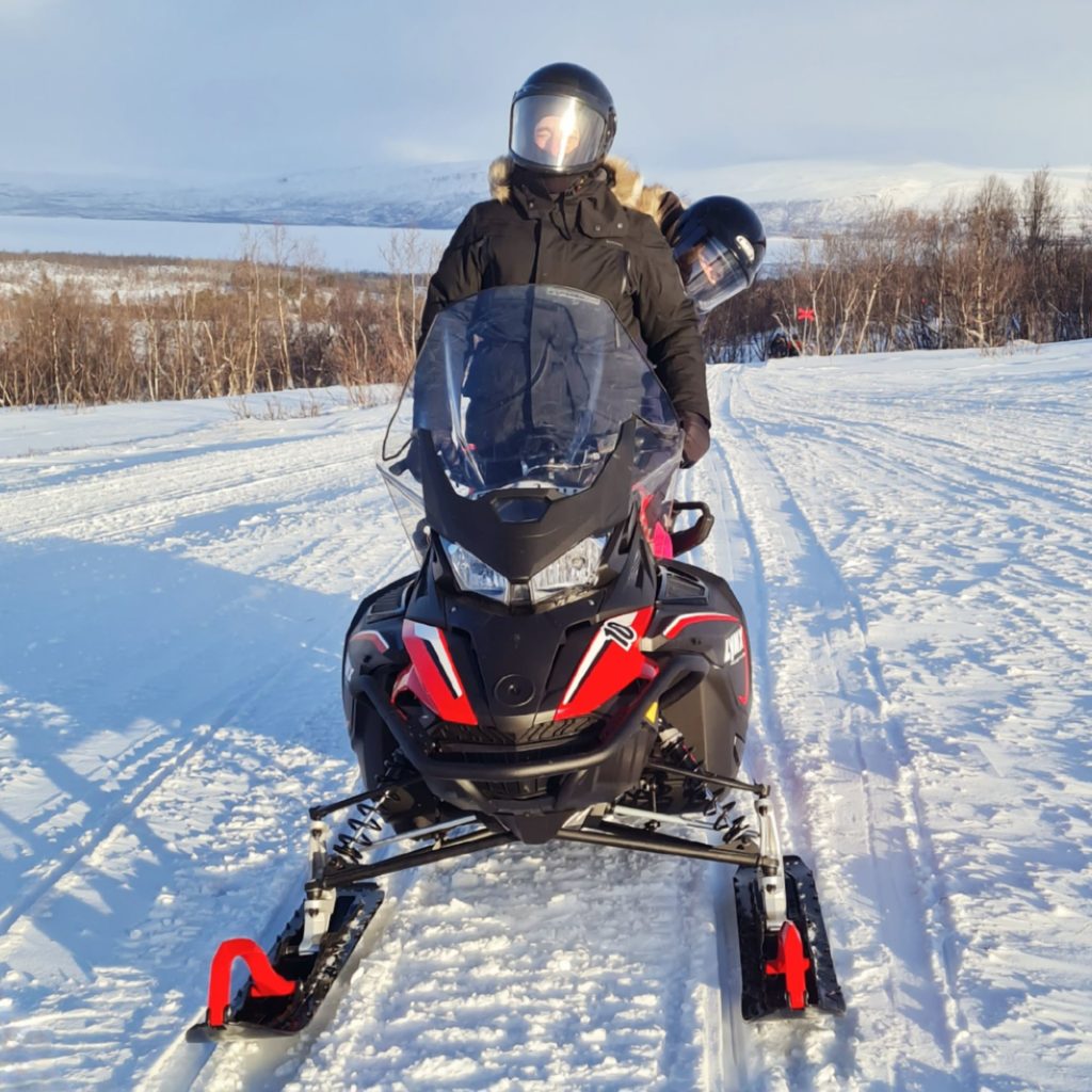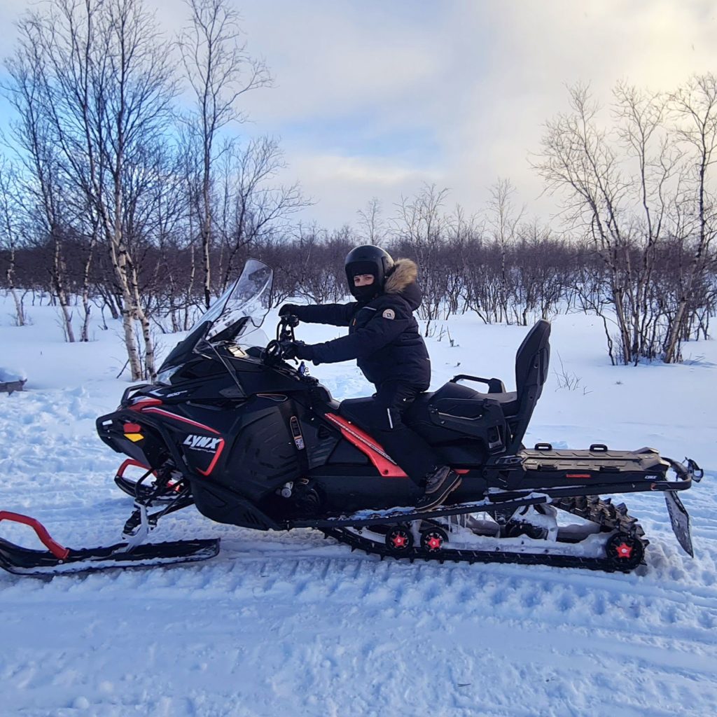 Ce n’est pas si simple de conduire une moto neige car elle a tendance à aller un peu où elle veut, il faut jouer des biscotos.