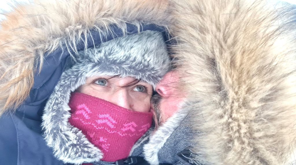 Il neige et il fait beau en même temps, le vent souffle un peu aujourd’hui, nous nous sentons bien petits face à cette nature si forte !