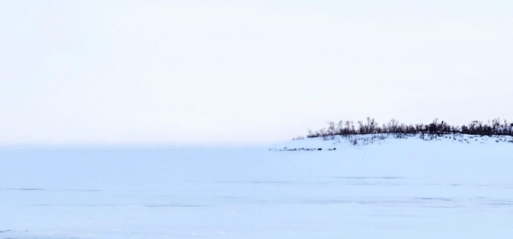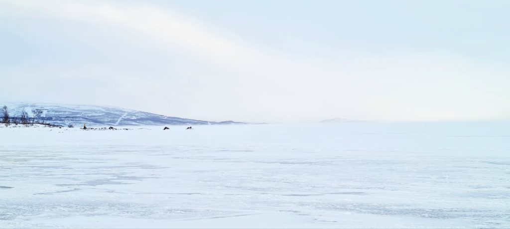 Nous traversons des forêts de bouleaux, un morceau de rivière gelée, nous croisons des chiens de traîneau.